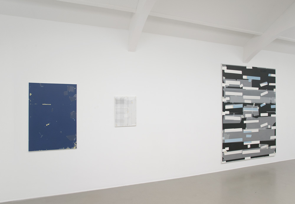 thus works on the principle of change, using the technique of painting to make the subject matter last. Tape as a basic technique for seeking and composing forms is given permanence by means of a